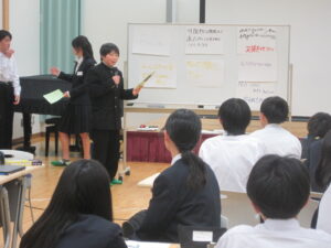 本日、第15回守山市生徒会サミットが、エルセンター大会議室で開催されました。3年生から2年生にバトンが受け継がれての最初のサミットでもあります。現在高校生であるサミット卒業生からの熱いメッセージをもらうことから始まった今回のサミットでは、各校の活動紹介の後、これからの活動の最上位目標を決定するグループ討議、全体協議がもたれました。