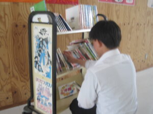 廊下には、関連書籍47冊を集めた“学年文庫”を臨時設置しました。