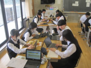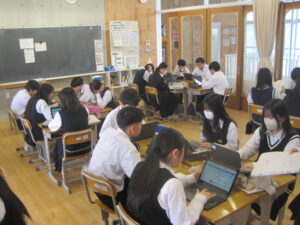 生徒たちはインターネットの情報だけでなく、実際に本を手に取りながら歴史と向き合い、自分たちのこれからの生き方について思いを巡らせています。