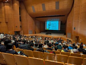 本日、守山市民ホール大ホールで、守山市小・中学校音楽会が開催されました。市立小中学校13校1,054人の児童生徒が集い、合唱や楽器演奏を披露しました。本校からは、6月の合唱コンクールで1学年最優秀賞に輝いた1年8組の生徒の皆さんが参加し、「ハートのアンテナ」や初披露の「上を向いて歩こう」を合唱しました。