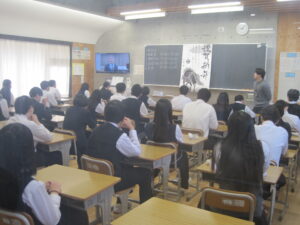 始業式の後は「新年の集い」があり、生徒会長からのあいさつや吹奏楽部員による新年祝賀演奏の録画を視聴しました。締めくくりとして、教育長からのメッセージを視聴しました。